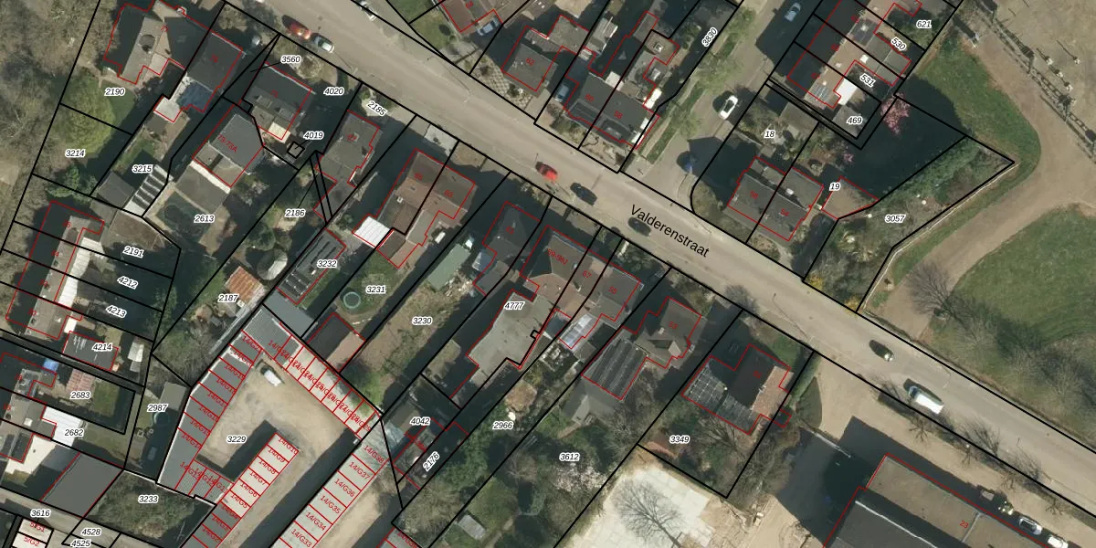 Het perceel waarop Valderenstraat 59-E staat heeft een oppervlakte van 445 m². Dit is een groot perceel. De perceeloppervlakte wordt geregistreerd door het Kadaster. Gedetailleerde informatie over de maten van dit perceel kunt u vinden in het rapport Kadastrale kaart met maatvoering van Valderenstraat 59-E.