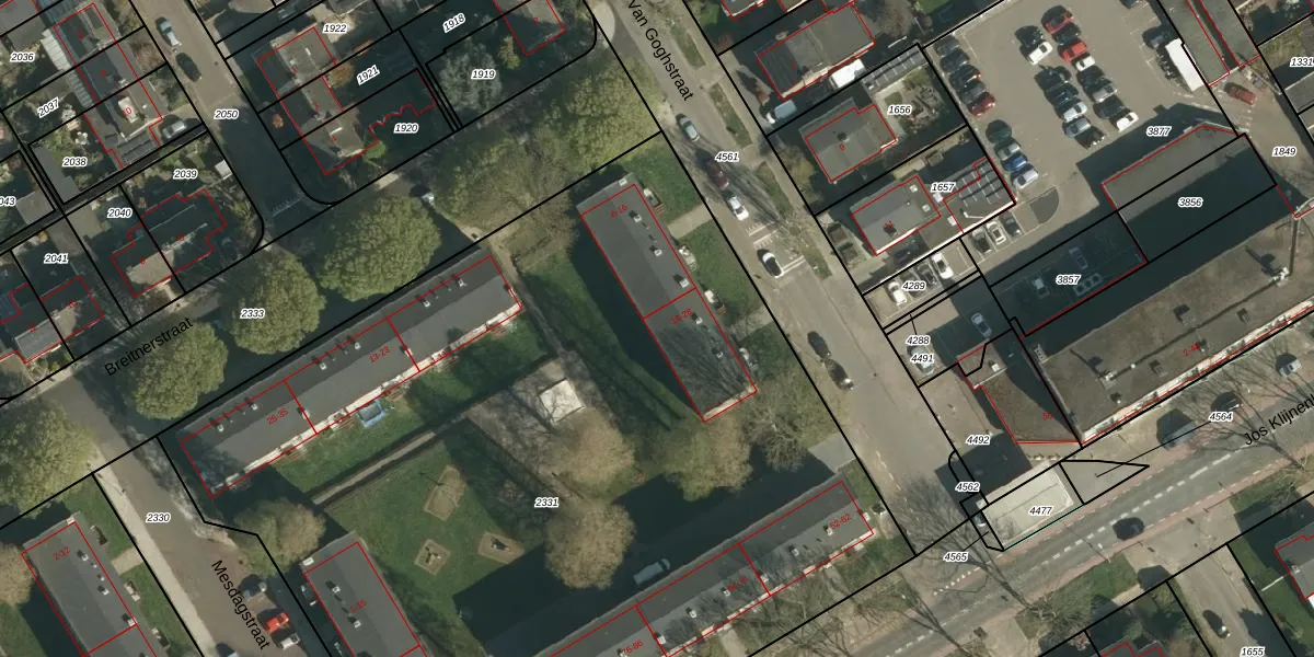 Het perceel waarop Van Goghstraat 26 staat heeft een oppervlakte van 6465 m². Dit is een zeer groot perceel. De perceeloppervlakte wordt geregistreerd door het Kadaster. Gedetailleerde informatie over de maten van dit perceel kunt u vinden in het rapport Kadastrale kaart met maatvoering van Van Goghstraat 26.