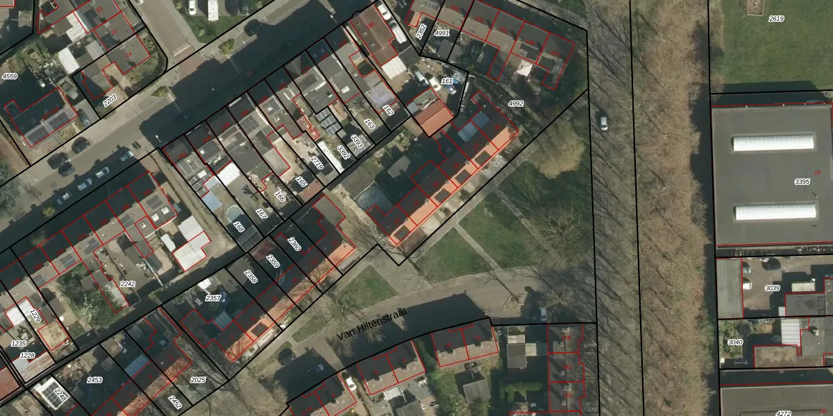 Het perceel waarop Van Hiltenstraat 21 staat heeft een oppervlakte van 1954 m². Dit is een zeer groot perceel. De perceeloppervlakte wordt geregistreerd door het Kadaster. Gedetailleerde informatie over de maten van dit perceel kunt u vinden in het rapport Kadastrale kaart met maatvoering van Van Hiltenstraat 21.