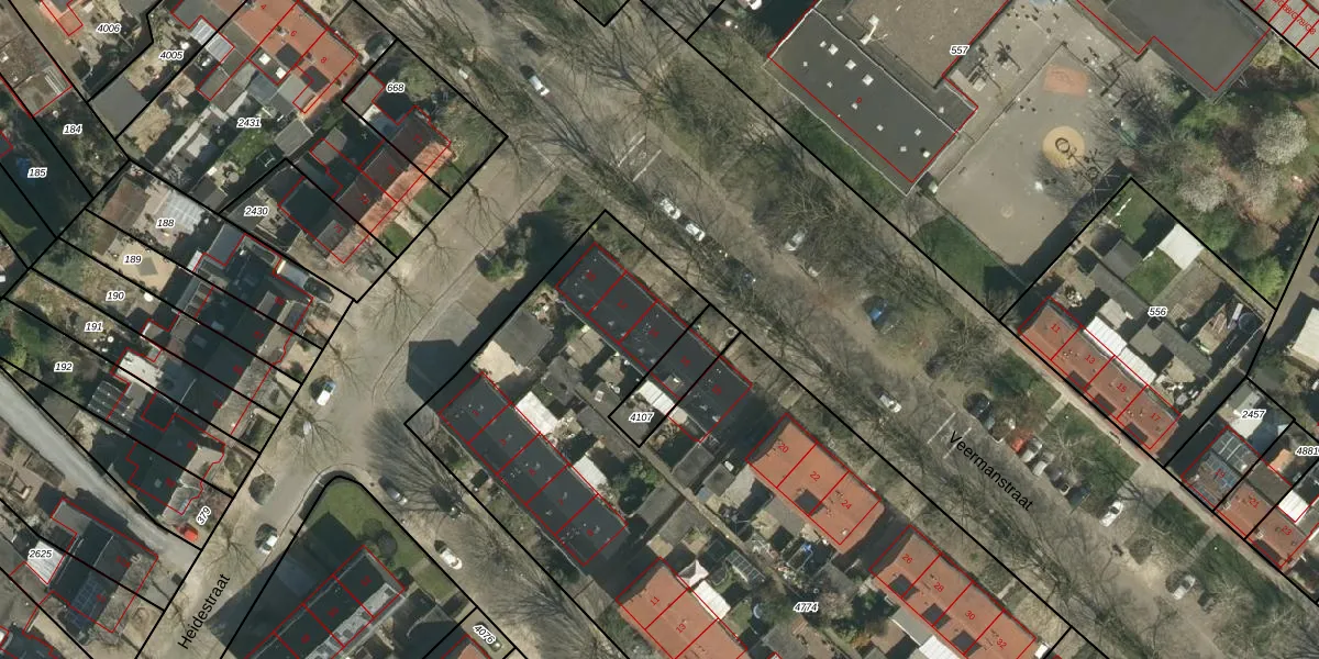 Het perceel waarop Veermanstraat 14 staat heeft een oppervlakte van 4222 m². Dit is een zeer groot perceel. De perceeloppervlakte wordt geregistreerd door het Kadaster. Gedetailleerde informatie over de maten van dit perceel kunt u vinden in het rapport Kadastrale kaart met maatvoering van Veermanstraat 14.
