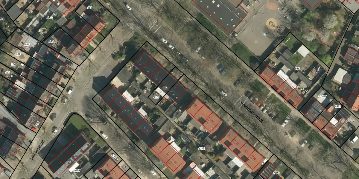 Het perceel waarop Veermanstraat 18 staat heeft een oppervlakte van 4222 m². Dit is een zeer groot perceel. De perceeloppervlakte wordt geregistreerd door het Kadaster. Gedetailleerde informatie over de maten van dit perceel kunt u vinden in het rapport Kadastrale kaart met maatvoering van Veermanstraat 18.