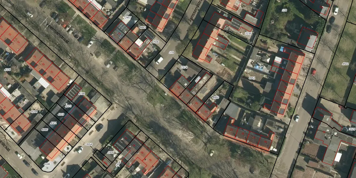 Veermanstraat 25 is gelegen op kadastraal perceel GLN00G2374. Deze kadastrale aanduiding is uniek en wordt gebruikt door het Kadaster om eigendomsrechten en andere zakelijke rechten vast te leggen. Het perceel maakt onderdeel uit van de kadastrale gemeente Geleen.