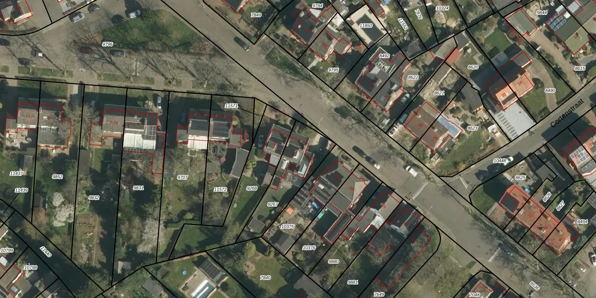 Gebruik de zoekbalk of klik op een perceel voor informatie over de adressen binnen dit perceel.