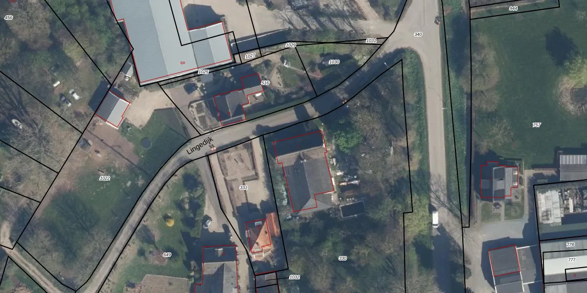 Het perceel waarop Lingedijk 7 staat heeft een oppervlakte van 3740 m². Dit is een zeer groot perceel. De perceeloppervlakte wordt geregistreerd door het Kadaster. Gedetailleerde informatie over de maten van dit perceel kunt u vinden in het rapport Kadastrale kaart met maatvoering van Lingedijk 7.
