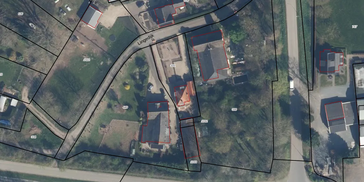 Het perceel waarop Lingedijk 9 staat heeft een oppervlakte van 740 m². Dit is een groot perceel. De perceeloppervlakte wordt geregistreerd door het Kadaster. Gedetailleerde informatie over de maten van dit perceel kunt u vinden in het rapport Kadastrale kaart met maatvoering van Lingedijk 9.