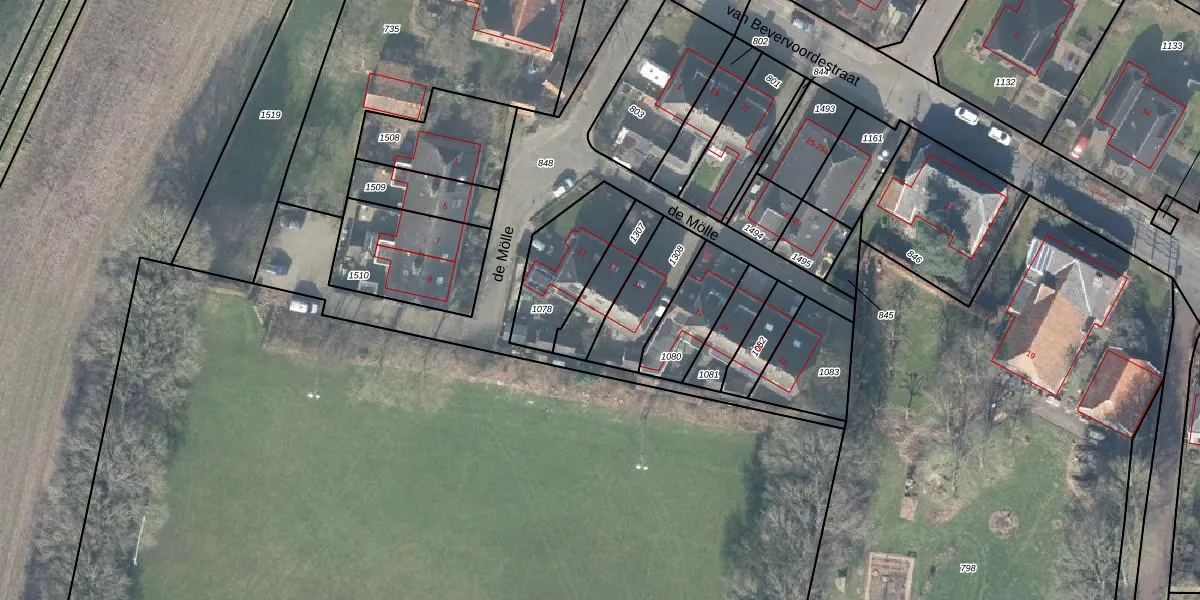 Het perceel waarop de Mölle 13 staat heeft een oppervlakte van 152 m². Dit is een middelgroot perceel. De perceeloppervlakte wordt geregistreerd door het Kadaster. Gedetailleerde informatie over de maten van dit perceel kunt u vinden in het rapport Kadastrale kaart met maatvoering van de Mölle 13.