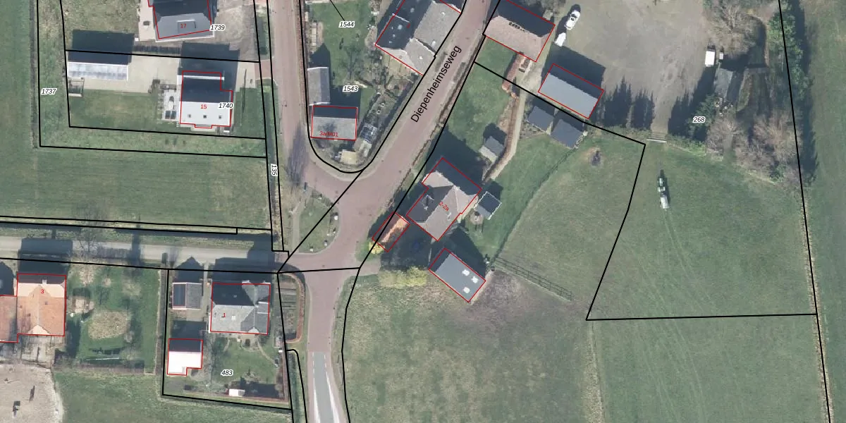 Het perceel waarop Diepenheimseweg 2-a staat heeft een oppervlakte van 1,3 ha. Dit is een zeer groot perceel. De perceeloppervlakte wordt geregistreerd door het Kadaster. Gedetailleerde informatie over de maten van dit perceel kunt u vinden in het rapport Kadastrale kaart met maatvoering van Diepenheimseweg 2-a.