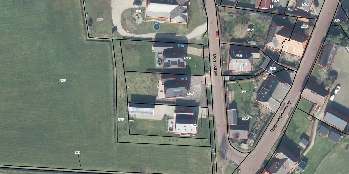 Het perceel waarop Dorpsstraat 17 staat heeft een oppervlakte van 827 m². Dit is een groot perceel. De perceeloppervlakte wordt geregistreerd door het Kadaster. Gedetailleerde informatie over de maten van dit perceel kunt u vinden in het rapport Kadastrale kaart met maatvoering van Dorpsstraat 17.