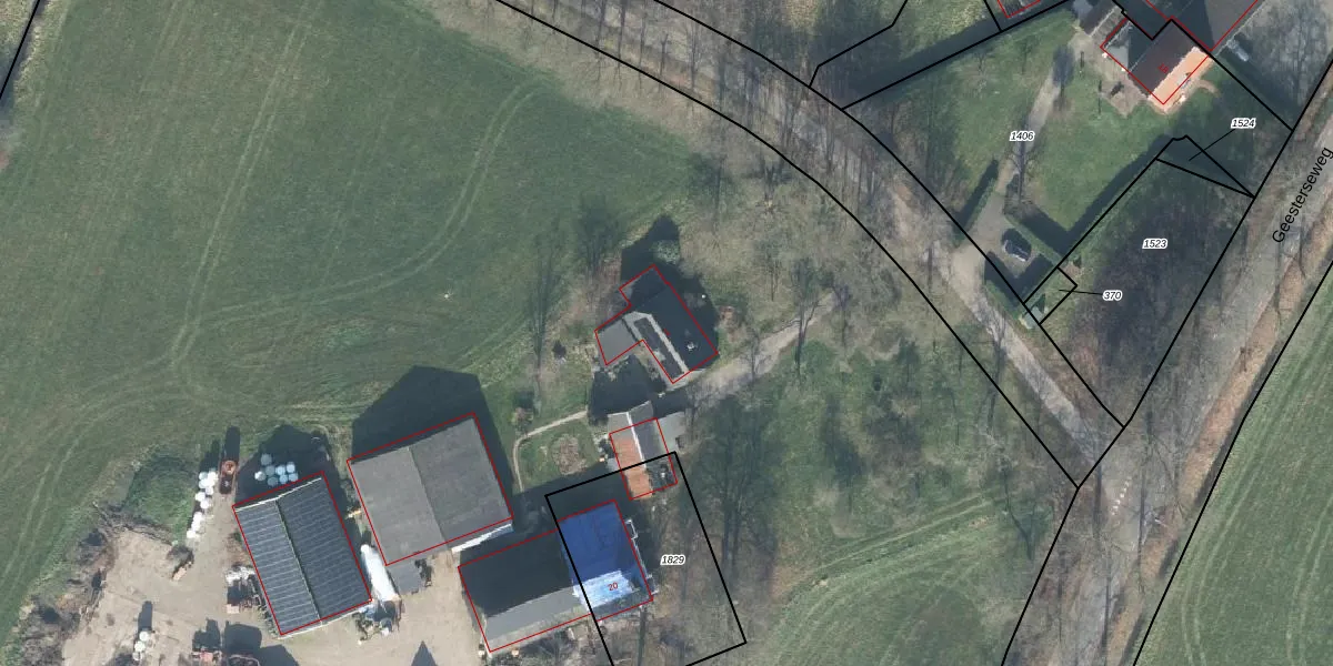 Het adres is gelegen op perceel 1828 in de sectie I en de kadastrale gemeente Geesteren. De kadastrale aanduiding is aldus GTR00-I-1828. Het perceel is met 2,7 ha relatief groot. Het gemiddelde ligt in de kadastrale gemeente Geesteren op 8637,46 m². Het grootste perceel in de kadastrale gemeente is 31,3 ha. Het kleinste perceel heeft een oppervlakte van 0 m². Op het perceel bevinden zich geen andere adressen. De laatste wijziging in het de Basisregistratie Kadaster (BRK) was op 20-11-2024.
