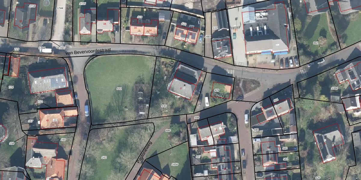 Pastorieweg 5 is gelegen op kadastraal perceel GTR00I930. Deze kadastrale aanduiding is uniek en wordt gebruikt door het Kadaster om eigendomsrechten en andere zakelijke rechten vast te leggen. Het perceel maakt onderdeel uit van de kadastrale gemeente Geesteren.