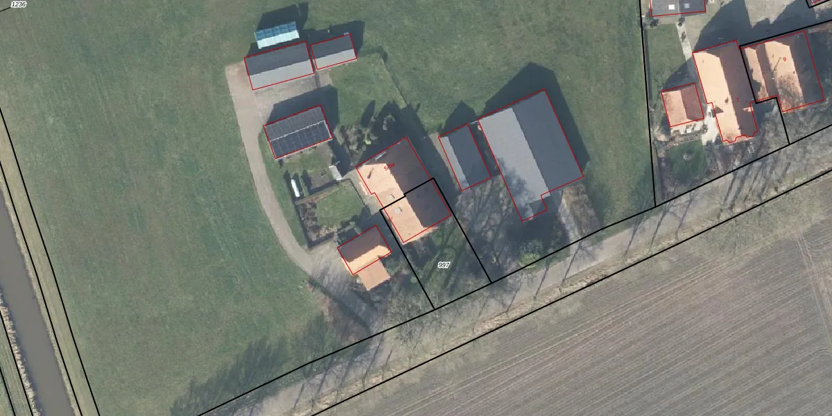 Het perceel waarop het adres ligt is GTR00-I-997. De afkorting 'GTR00' staat voor kadastrale gemeente Geesteren. Het perceel is kleiner dan gemiddeld in Geesteren. Het perceel is 425 m² groot, terwijl het gemiddelde ligt op 8642,12 m². De grootste perceeloppervlakte in de kadastrale gemeente is 31,3 ha. De kleinste oppervlakte bedraagt 0 m². Dit is het enige adres dat aanwezig is op het perceel. De huidige grenzen van het perceel zijn digitaal in de Basisregistratie Kadaster (BRK) geregistreerd op 04-12-2001.