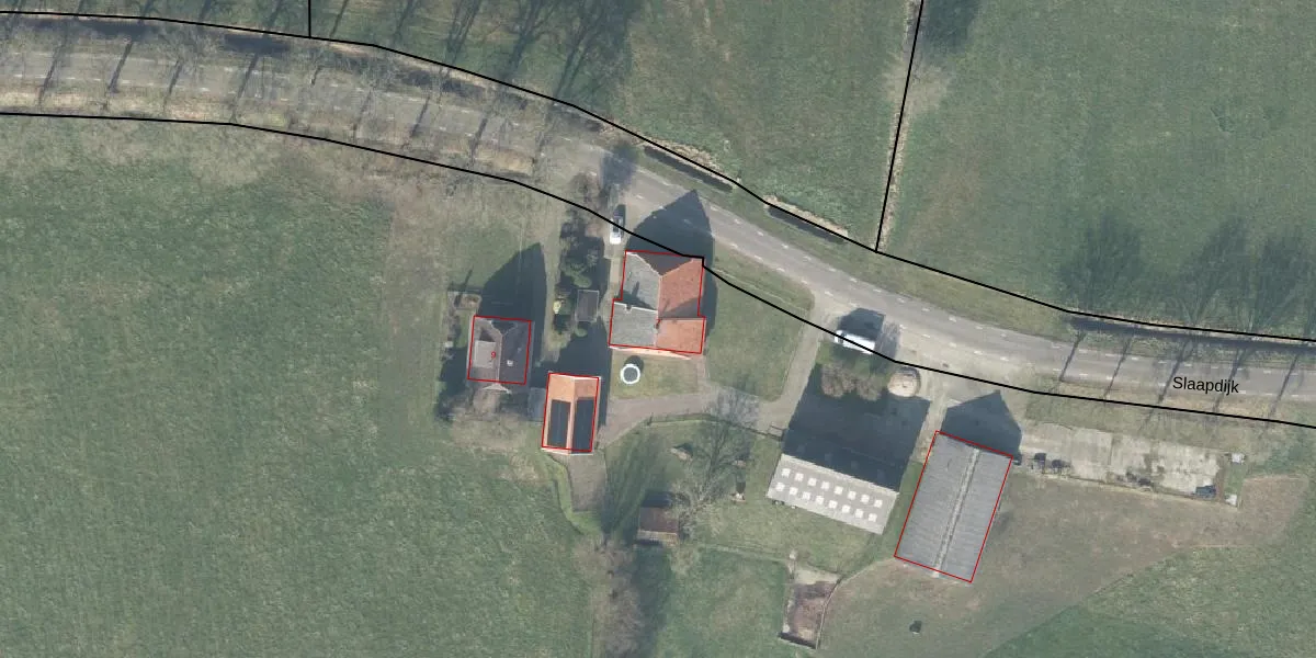 Het perceel waarop Slaapdijk 7 staat heeft een oppervlakte van 3,6 ha. Dit is een zeer groot perceel. De perceeloppervlakte wordt geregistreerd door het Kadaster. Gedetailleerde informatie over de maten van dit perceel kunt u vinden in het rapport Kadastrale kaart met maatvoering van Slaapdijk 7.