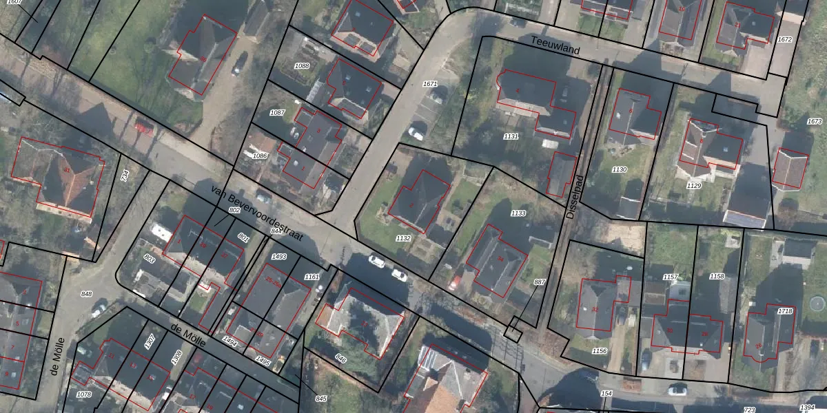 Het perceel waarop Teeuwland 2 staat heeft een oppervlakte van 649 m². Dit is een groot perceel. De perceeloppervlakte wordt geregistreerd door het Kadaster. Gedetailleerde informatie over de maten van dit perceel kunt u vinden in het rapport Kadastrale kaart met maatvoering van Teeuwland 2.
