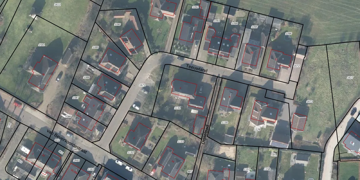 Het perceel waarop Teeuwland 4 staat heeft een oppervlakte van 967 m². Dit is een groot perceel. De perceeloppervlakte wordt geregistreerd door het Kadaster. Gedetailleerde informatie over de maten van dit perceel kunt u vinden in het rapport Kadastrale kaart met maatvoering van Teeuwland 4.