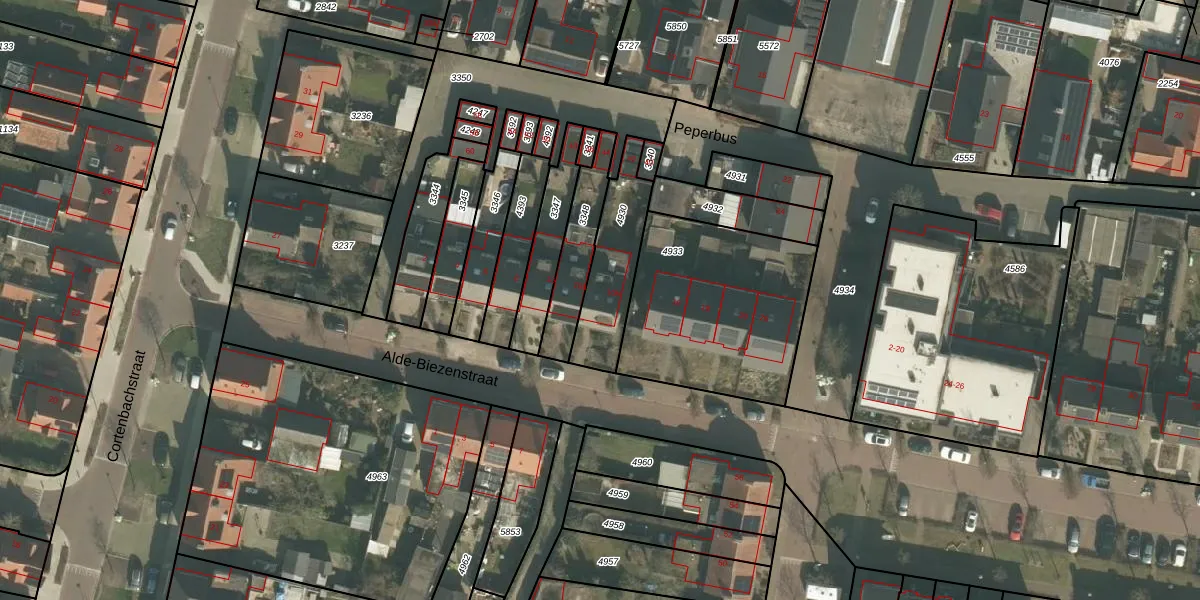 Alde-Biezenstraat 10-b is gelegen op kadastraal perceel GMT00M4930. Deze kadastrale aanduiding is uniek en wordt gebruikt door het Kadaster om eigendomsrechten en andere zakelijke rechten vast te leggen. Het perceel maakt onderdeel uit van de kadastrale gemeente Gemert.