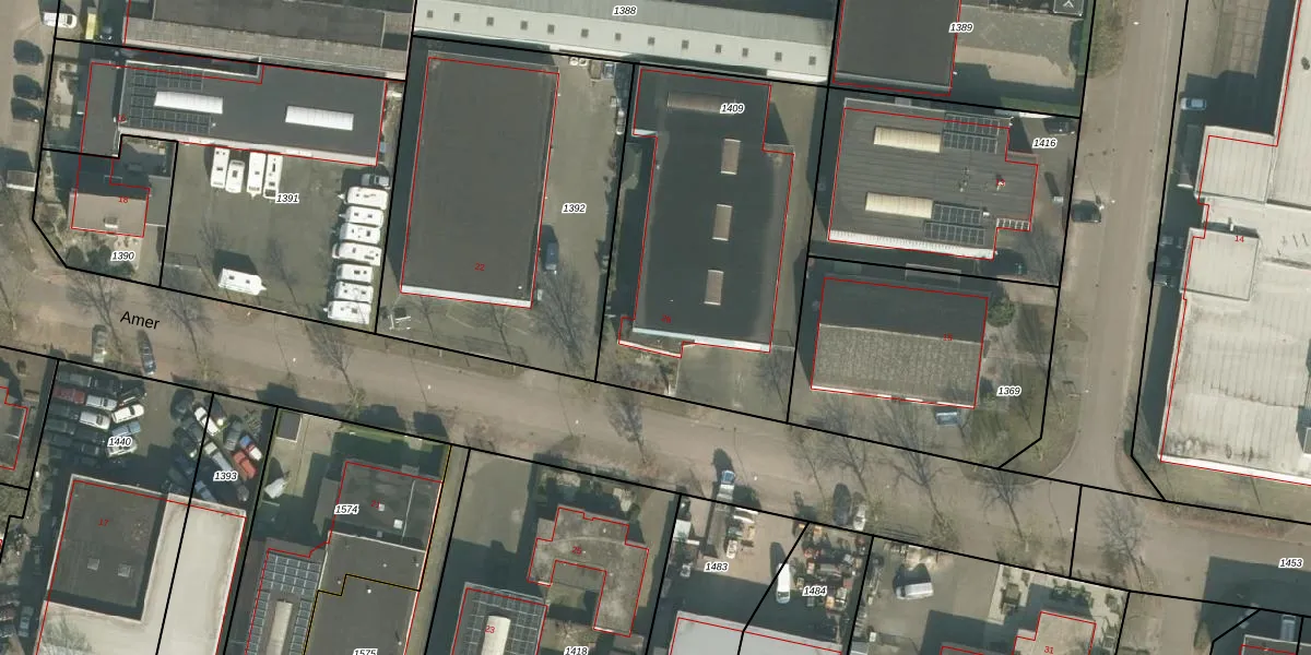 Het perceel waarop Amer 26 staat heeft een oppervlakte van 1500 m². Dit is een zeer groot perceel. De perceeloppervlakte wordt geregistreerd door het Kadaster. Gedetailleerde informatie over de maten van dit perceel kunt u vinden in het rapport Kadastrale kaart met maatvoering van Amer 26.