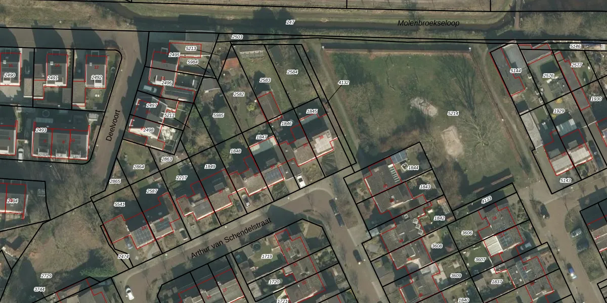 Arthur van Schendelstraat 36 is gelegen op kadastraal perceel GMT00M1846. Deze kadastrale aanduiding is uniek en wordt gebruikt door het Kadaster om eigendomsrechten en andere zakelijke rechten vast te leggen. Het perceel maakt onderdeel uit van de kadastrale gemeente Gemert.