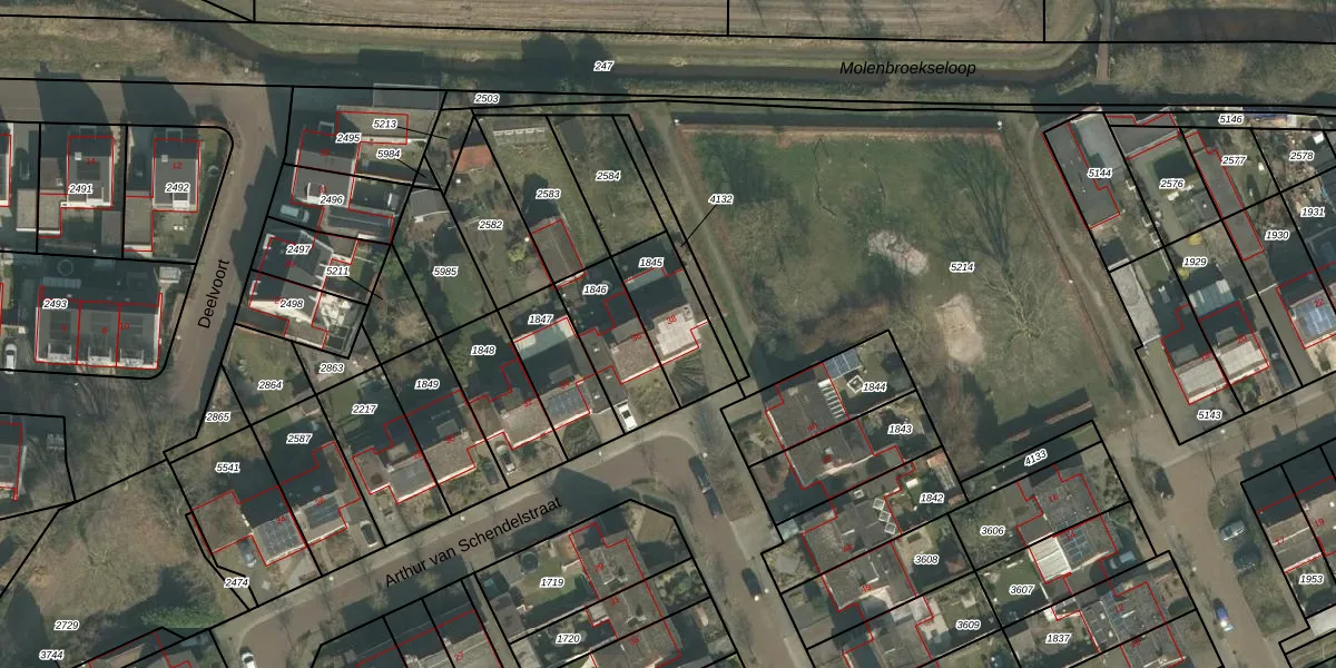 Gebruik de zoekbalk of klik op een perceel voor informatie over de adressen binnen dit perceel.
