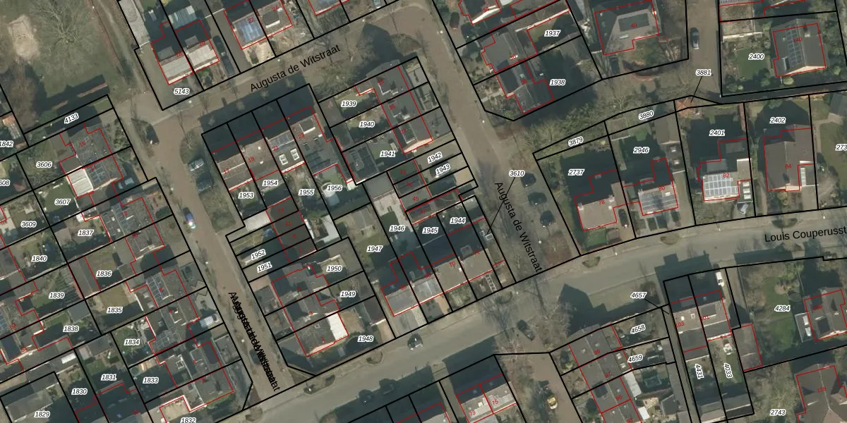 Het perceel waarop Augusta de Witstraat 47 staat heeft een oppervlakte van 202 m². Dit is een middelgroot perceel. De perceeloppervlakte wordt geregistreerd door het Kadaster. Gedetailleerde informatie over de maten van dit perceel kunt u vinden in het rapport Kadastrale kaart met maatvoering van Augusta de Witstraat 47.