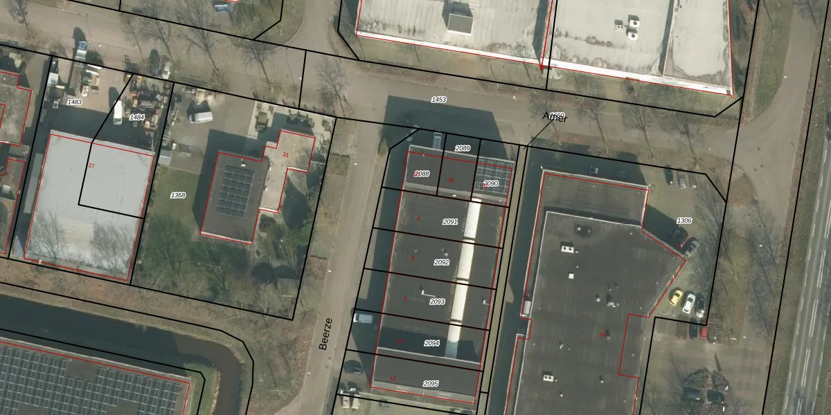 Gebruik de zoekbalk of klik op een perceel voor informatie over de adressen binnen dit perceel.