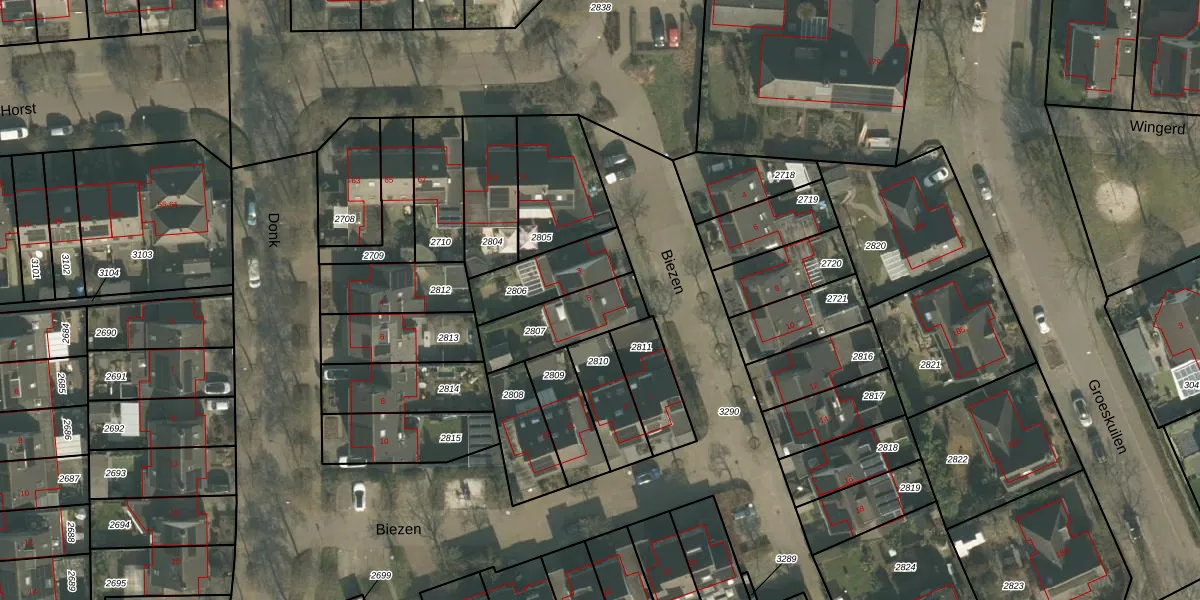 Gebruik de zoekbalk of klik op een perceel voor informatie over de adressen binnen dit perceel.