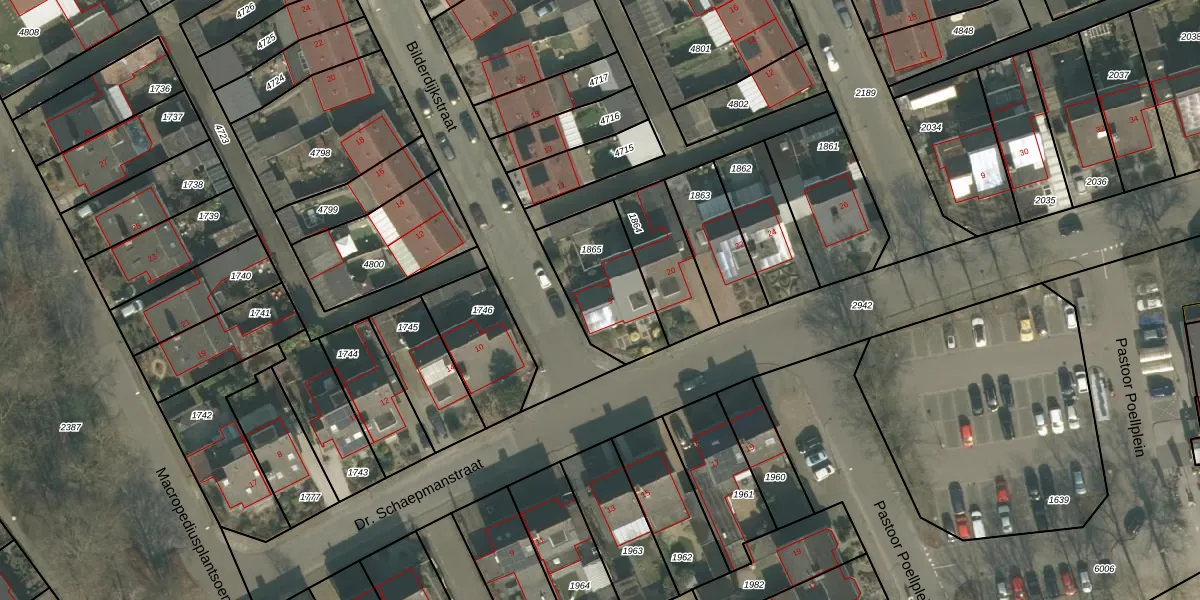 Gebruik de zoekbalk of klik op een perceel voor informatie over de adressen binnen dit perceel.