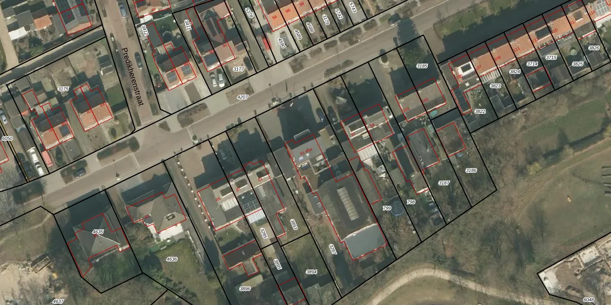 Het perceel waarop Bisonstraat 95 staat heeft een oppervlakte van 1371 m². Dit is een zeer groot perceel. De perceeloppervlakte wordt geregistreerd door het Kadaster. Gedetailleerde informatie over de maten van dit perceel kunt u vinden in het rapport Kadastrale kaart met maatvoering van Bisonstraat 95.
