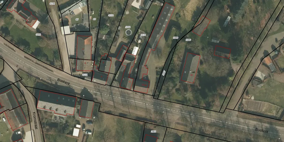Het perceel waarop Boekent 14 staat heeft een oppervlakte van 8105 m². Dit is een zeer groot perceel. De perceeloppervlakte wordt geregistreerd door het Kadaster. Gedetailleerde informatie over de maten van dit perceel kunt u vinden in het rapport Kadastrale kaart met maatvoering van Boekent 14.