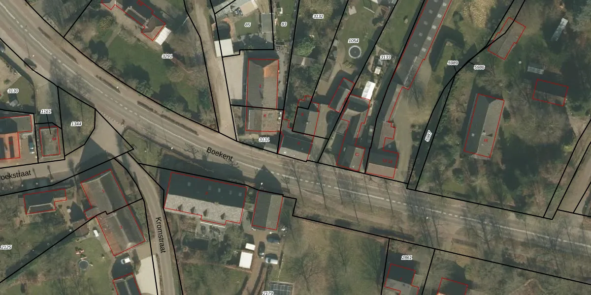 Het perceel waarop Boekent 6 staat heeft een oppervlakte van 1030 m². Dit is een zeer groot perceel. De perceeloppervlakte wordt geregistreerd door het Kadaster. Gedetailleerde informatie over de maten van dit perceel kunt u vinden in het rapport Kadastrale kaart met maatvoering van Boekent 6.