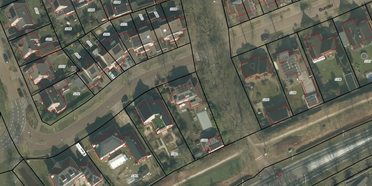 Het perceel waarop Bunder 21 staat heeft een oppervlakte van 877 m². Dit is een groot perceel. De perceeloppervlakte wordt geregistreerd door het Kadaster. Gedetailleerde informatie over de maten van dit perceel kunt u vinden in het rapport Kadastrale kaart met maatvoering van Bunder 21.