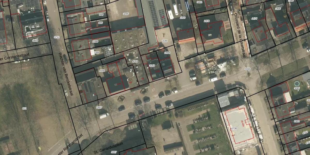 Het perceel waarop het adres ligt is GMT00-M-3143. De afkorting 'GMT00' staat voor kadastrale gemeente Gemert. De gemiddelde perceelgrootte in Gemert is 4645,96 m². Dit perceel is kleiner: de perceeloppervlakte bedraagt 191 m². Het kleinste perceel in de kadastrale gemeente is 0 m² groot. De grootste perceeloppervlakte is 67,8 ha. Op het perceel liggen in totaal 2 adressen. In de Basisregistratie Kadaster (BRK) werden de grenzen van het perceel geregistreerd op 22-03-2005.
