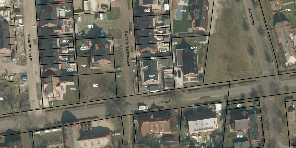 Het perceel waarop Cathelijn Badenstraat 1 staat heeft een oppervlakte van 540 m². Dit is een groot perceel. De perceeloppervlakte wordt geregistreerd door het Kadaster. Gedetailleerde informatie over de maten van dit perceel kunt u vinden in het rapport Kadastrale kaart met maatvoering van Cathelijn Badenstraat 1.