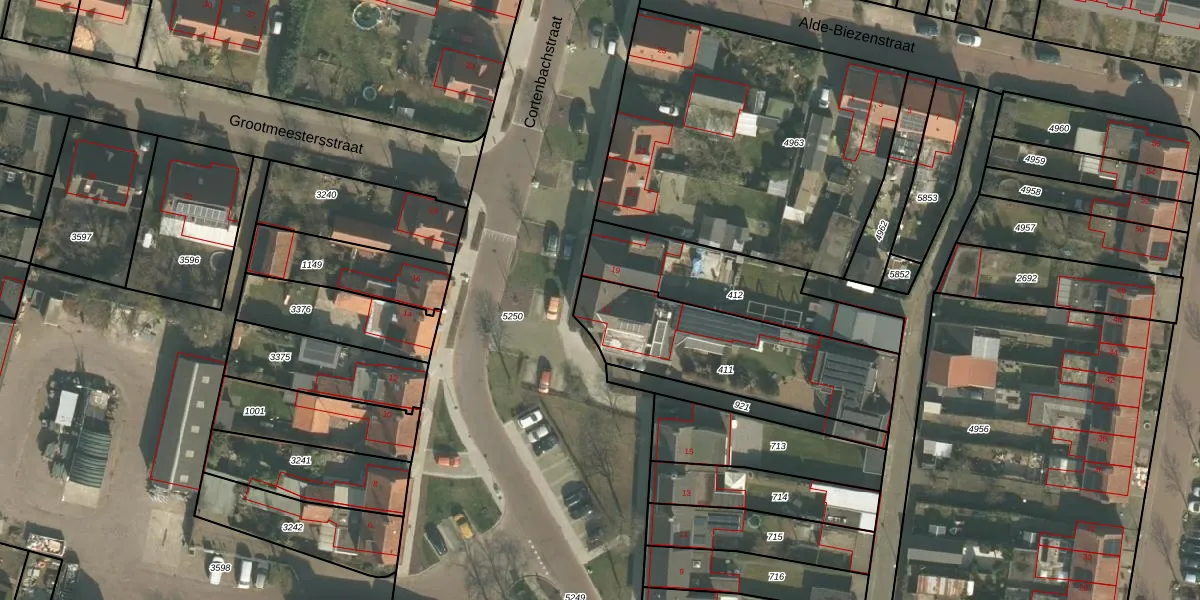 Het perceel waarop Cortenbachstraat 17 staat heeft een oppervlakte van 710 m². Dit is een groot perceel. De perceeloppervlakte wordt geregistreerd door het Kadaster. Gedetailleerde informatie over de maten van dit perceel kunt u vinden in het rapport Kadastrale kaart met maatvoering van Cortenbachstraat 17.