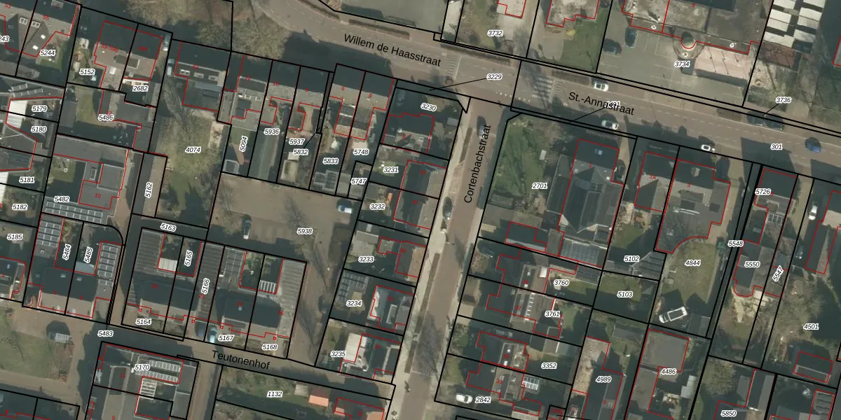 Gebruik de zoekbalk of klik op een perceel voor informatie over de adressen binnen dit perceel.