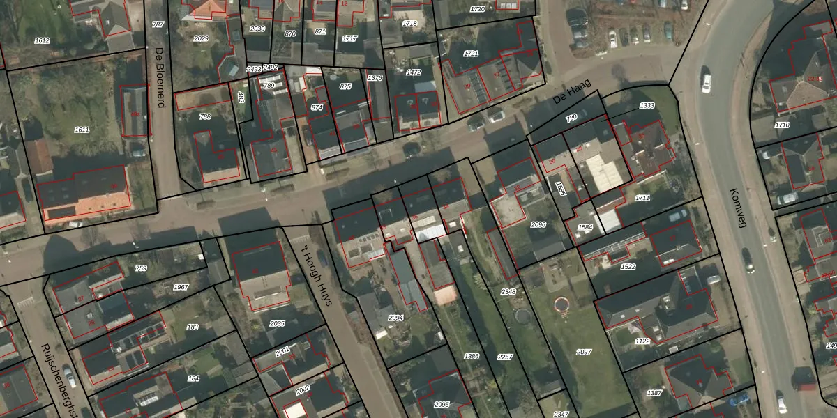 Het perceel waarop De Haag 36 staat heeft een oppervlakte van 505 m². Dit is een groot perceel. De perceeloppervlakte wordt geregistreerd door het Kadaster. Gedetailleerde informatie over de maten van dit perceel kunt u vinden in het rapport Kadastrale kaart met maatvoering van De Haag 36.