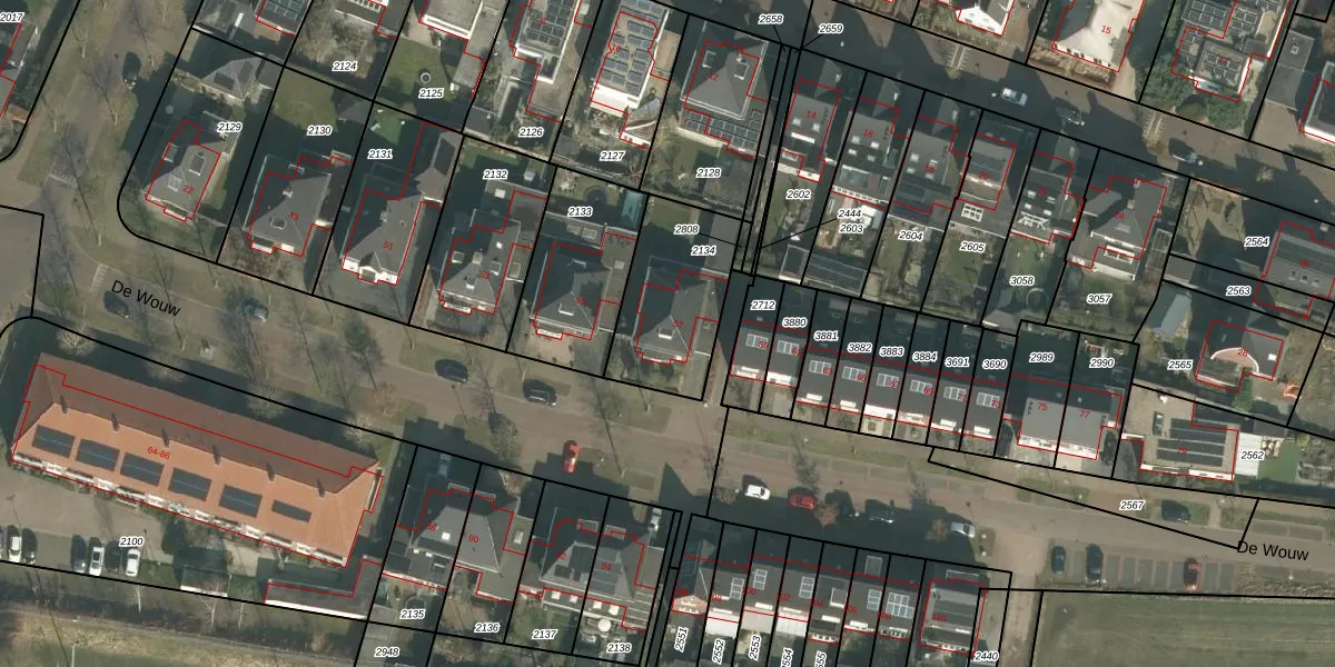 Het perceel waarop De Wouw 57 staat heeft een oppervlakte van 417 m². Dit is een groot perceel. De perceeloppervlakte wordt geregistreerd door het Kadaster. Gedetailleerde informatie over de maten van dit perceel kunt u vinden in het rapport Kadastrale kaart met maatvoering van De Wouw 57.