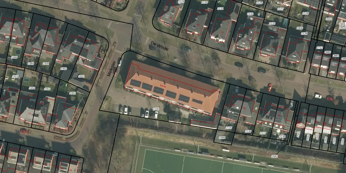 Het perceel waarop De Wouw 74 staat heeft een oppervlakte van 2142 m². Dit is een zeer groot perceel. De perceeloppervlakte wordt geregistreerd door het Kadaster. Gedetailleerde informatie over de maten van dit perceel kunt u vinden in het rapport Kadastrale kaart met maatvoering van De Wouw 74.