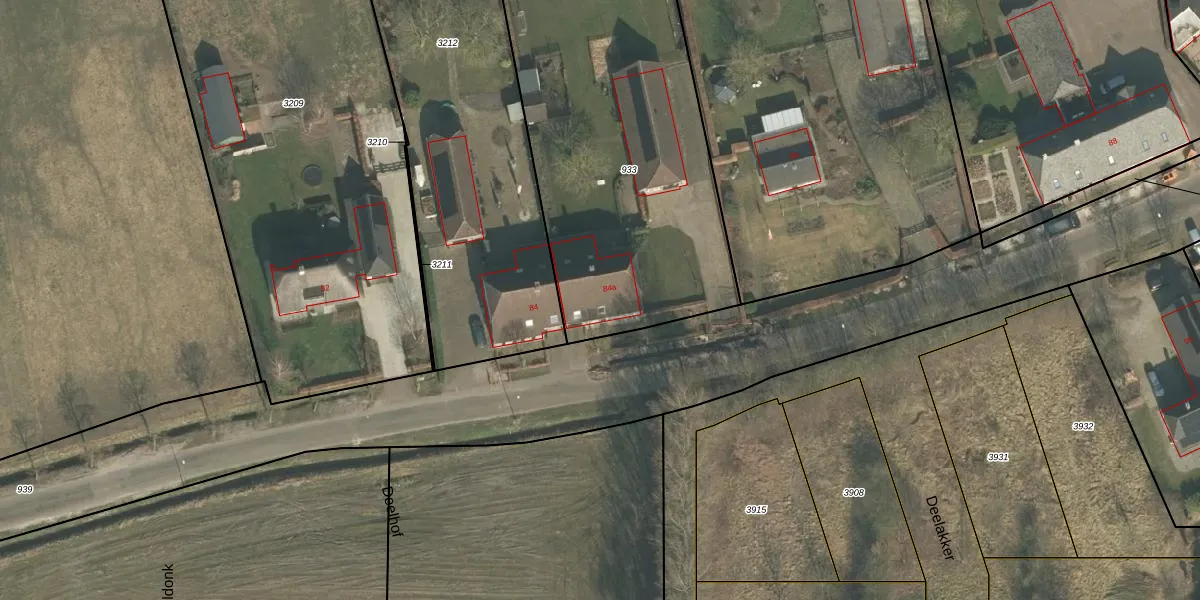 Het perceel waarop Deel 84-a staat heeft een oppervlakte van 2970 m². Dit is een zeer groot perceel. De perceeloppervlakte wordt geregistreerd door het Kadaster. Gedetailleerde informatie over de maten van dit perceel kunt u vinden in het rapport Kadastrale kaart met maatvoering van Deel 84-a.
