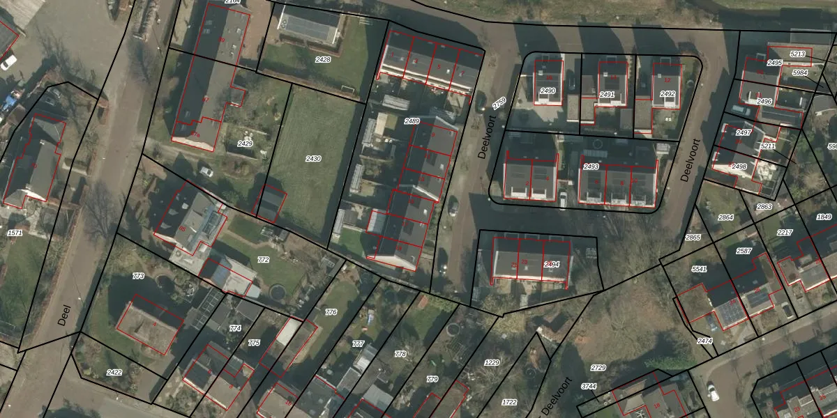 Deelvoort 15 is gelegen op kadastraal perceel GMT00O2489. Deze kadastrale aanduiding is uniek en wordt gebruikt door het Kadaster om eigendomsrechten en andere zakelijke rechten vast te leggen. Het perceel maakt onderdeel uit van de kadastrale gemeente Gemert.