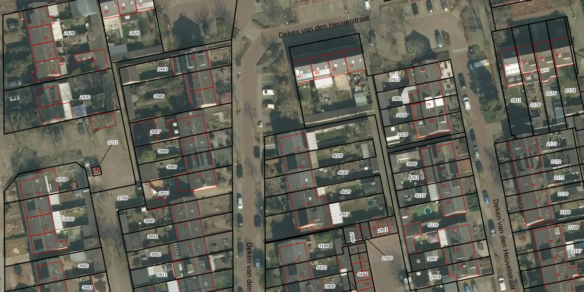 Het perceel waarop Deken van den Heuvelstraat 25 staat heeft een oppervlakte van 627 m². Dit is een groot perceel. De perceeloppervlakte wordt geregistreerd door het Kadaster. Gedetailleerde informatie over de maten van dit perceel kunt u vinden in het rapport Kadastrale kaart met maatvoering van Deken van den Heuvelstraat 25.
