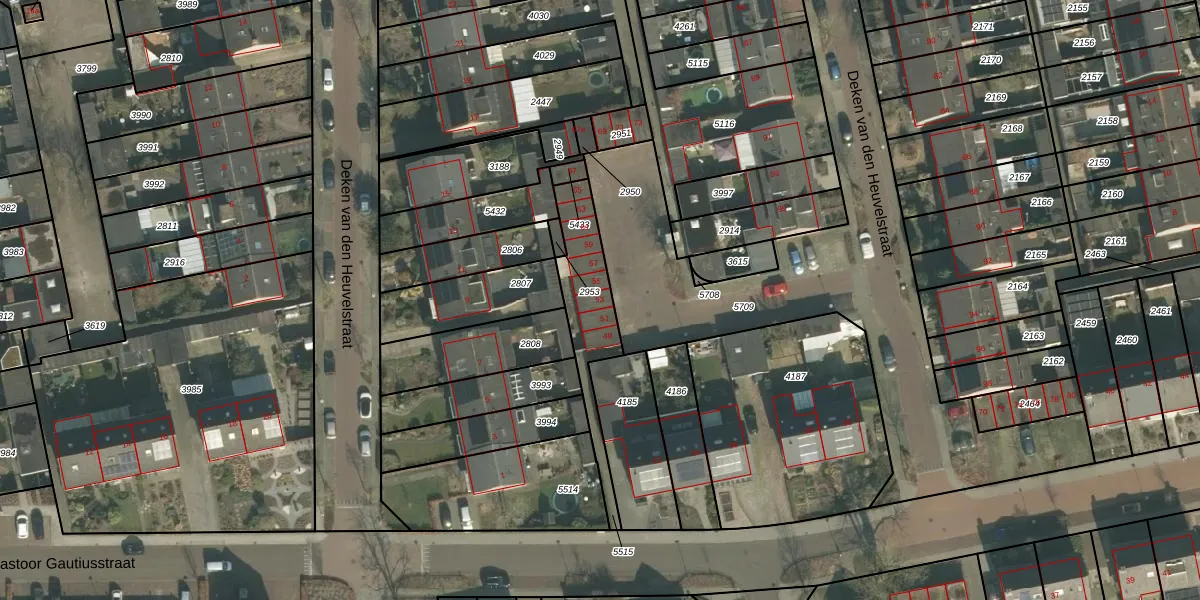 Deken van den Heuvelstraat 53 is gelegen op kadastraal perceel GMT00M5515. Deze kadastrale aanduiding is uniek en wordt gebruikt door het Kadaster om eigendomsrechten en andere zakelijke rechten vast te leggen. Het perceel maakt onderdeel uit van de kadastrale gemeente Gemert.