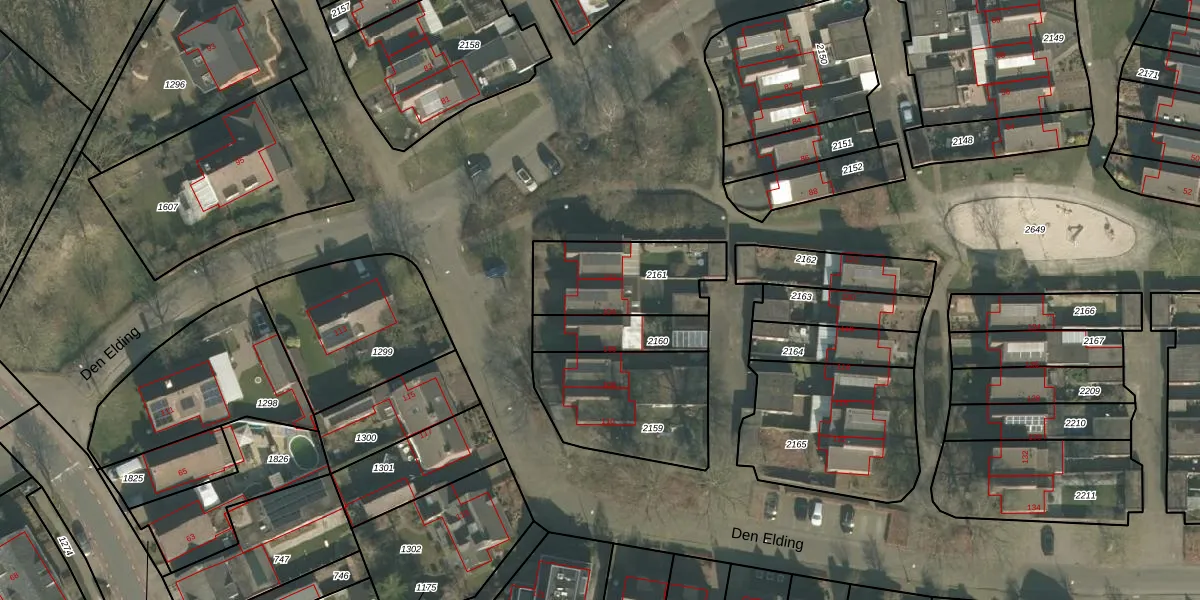Het perceel waarop Den Elding 104 staat heeft een oppervlakte van 370 m². Dit is een groot perceel. De perceeloppervlakte wordt geregistreerd door het Kadaster. Gedetailleerde informatie over de maten van dit perceel kunt u vinden in het rapport Kadastrale kaart met maatvoering van Den Elding 104.