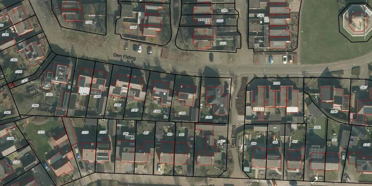 Het perceel waarop Den Elding 133 staat heeft een oppervlakte van 372 m². Dit is een groot perceel. De perceeloppervlakte wordt geregistreerd door het Kadaster. Gedetailleerde informatie over de maten van dit perceel kunt u vinden in het rapport Kadastrale kaart met maatvoering van Den Elding 133.