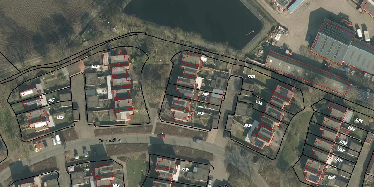 Het perceel waarop Den Elding 43 staat heeft een oppervlakte van 186 m². Dit is een middelgroot perceel. De perceeloppervlakte wordt geregistreerd door het Kadaster. Gedetailleerde informatie over de maten van dit perceel kunt u vinden in het rapport Kadastrale kaart met maatvoering van Den Elding 43.