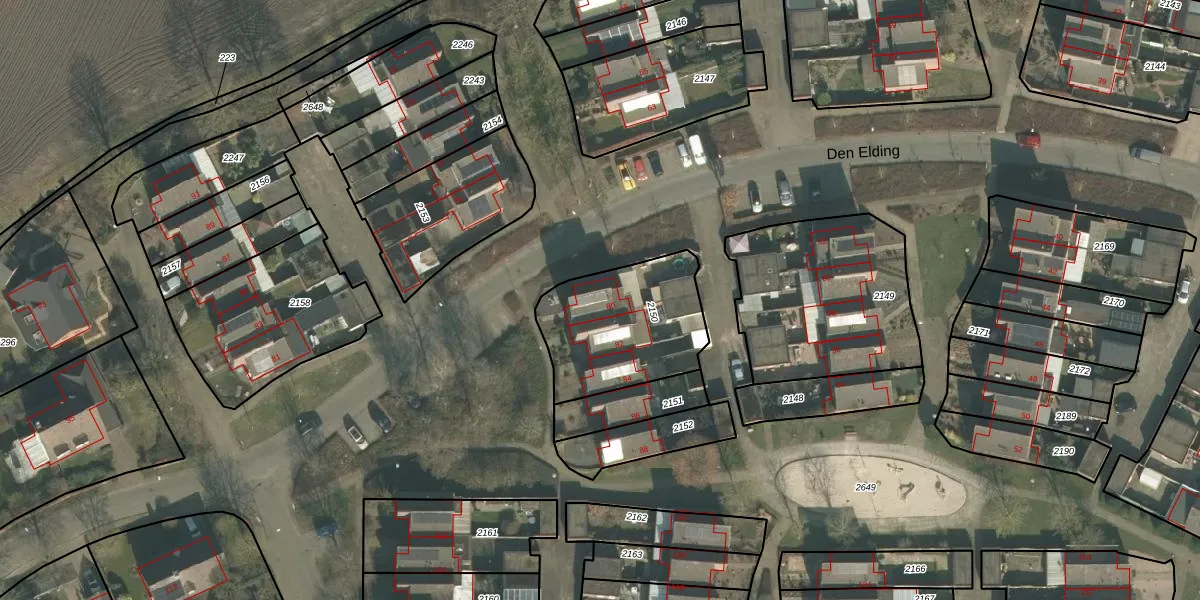 Het perceel waarop Den Elding 80 staat heeft een oppervlakte van 510 m². Dit is een groot perceel. De perceeloppervlakte wordt geregistreerd door het Kadaster. Gedetailleerde informatie over de maten van dit perceel kunt u vinden in het rapport Kadastrale kaart met maatvoering van Den Elding 80.