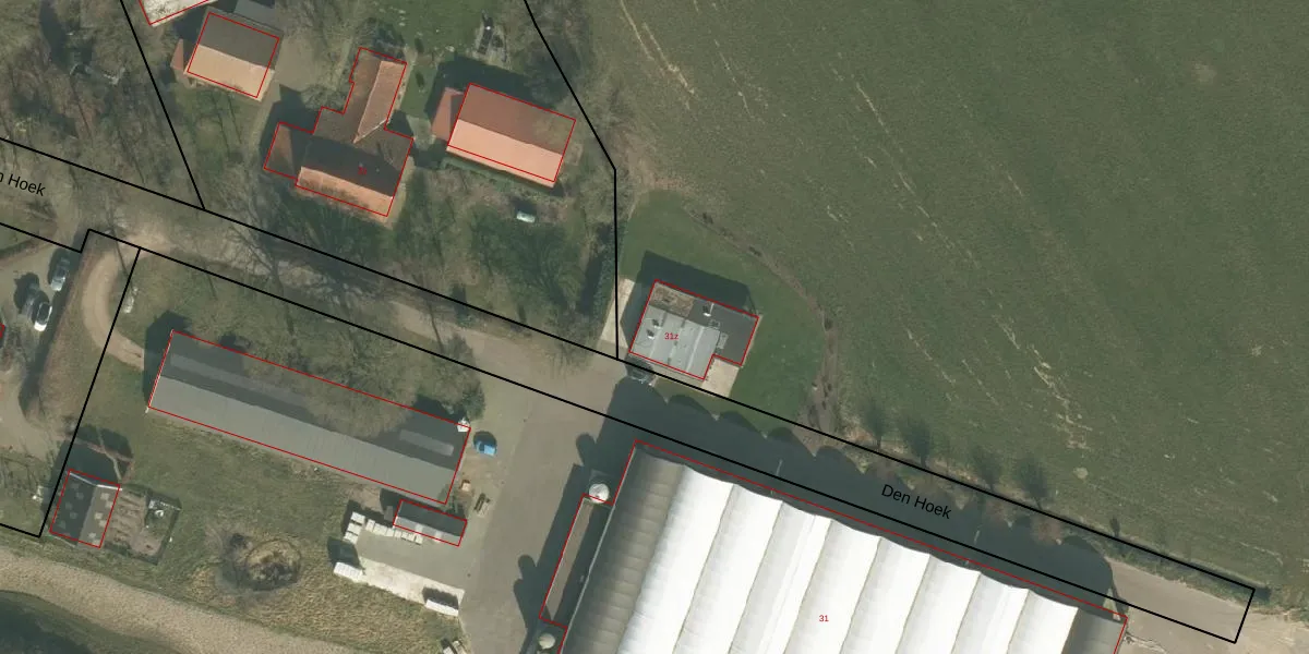 Het perceel waarop Den Hoek 31-z staat heeft een oppervlakte van 30,9 ha. Dit is een zeer groot perceel. De perceeloppervlakte wordt geregistreerd door het Kadaster. Gedetailleerde informatie over de maten van dit perceel kunt u vinden in het rapport Kadastrale kaart met maatvoering van Den Hoek 31-z.
