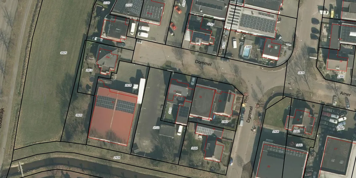 Het perceel waarop Dommel 17 staat heeft een oppervlakte van 423 m². Dit is een groot perceel. De perceeloppervlakte wordt geregistreerd door het Kadaster. Gedetailleerde informatie over de maten van dit perceel kunt u vinden in het rapport Kadastrale kaart met maatvoering van Dommel 17.