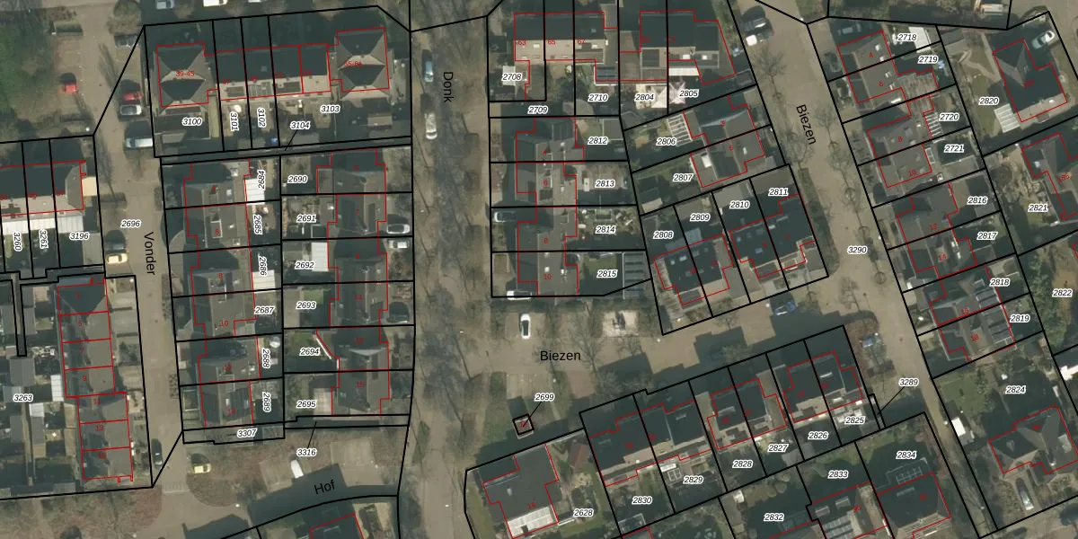 Gebruik de zoekbalk of klik op een perceel voor informatie over de adressen binnen dit perceel.