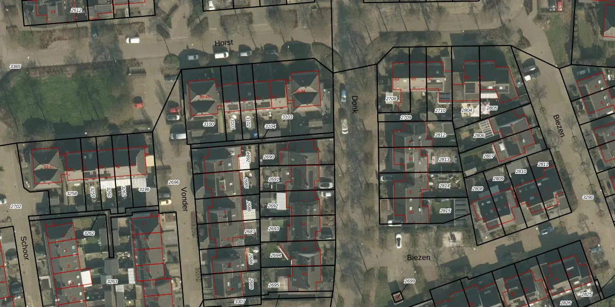 Gebruik de zoekbalk of klik op een perceel voor informatie over de adressen binnen dit perceel.