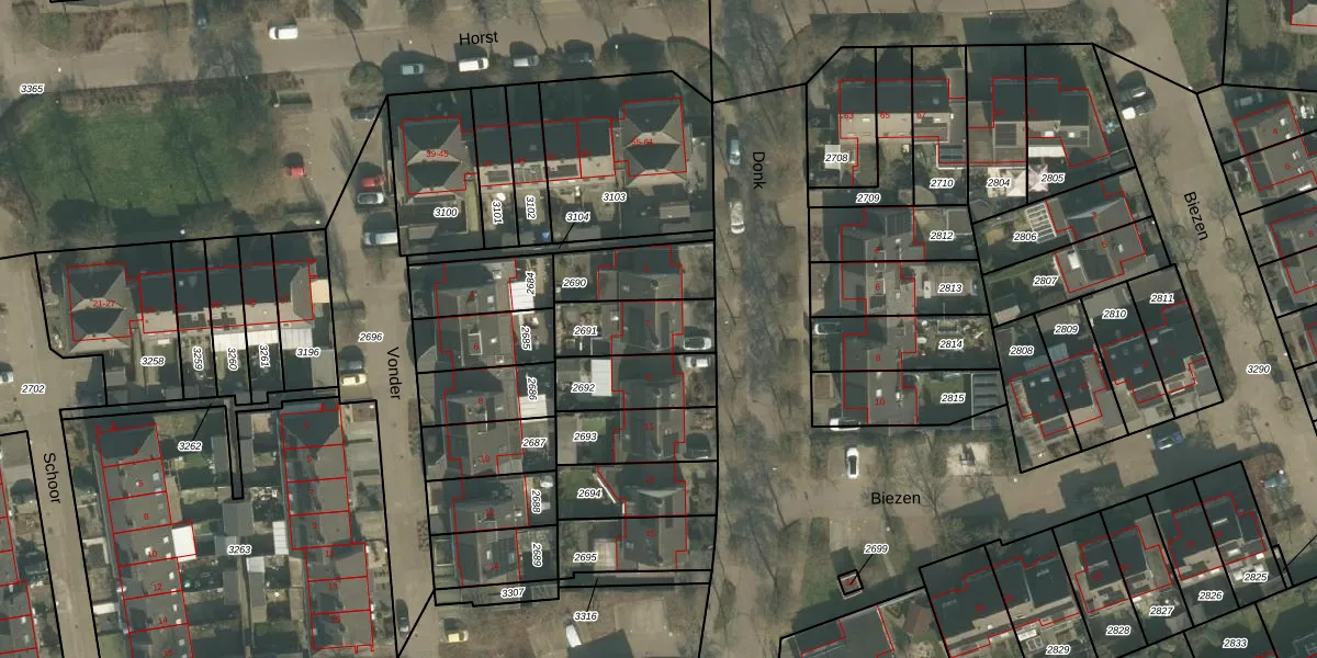 Gebruik de zoekbalk of klik op een perceel voor informatie over de adressen binnen dit perceel.